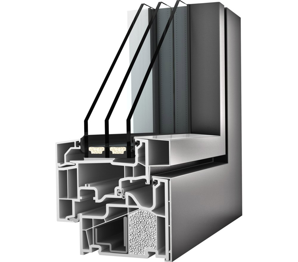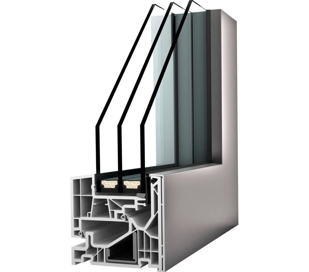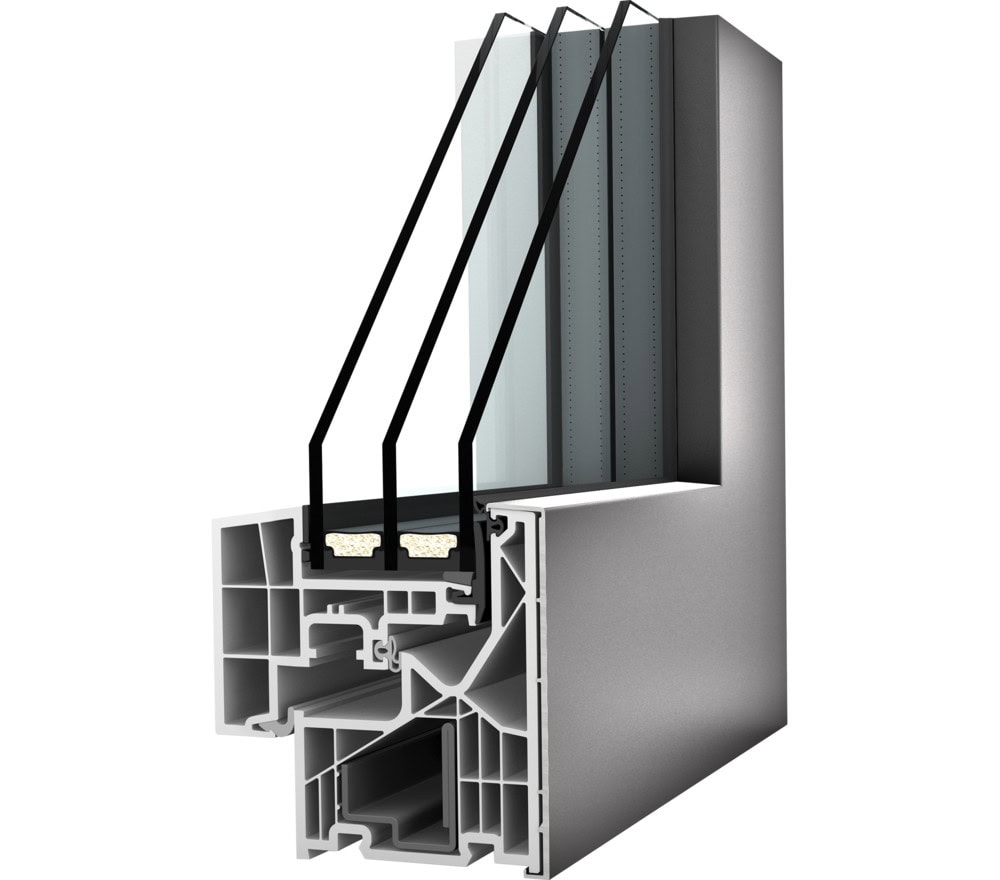 De overwegend vlakke raamsystemen kunnen volledig in het metselwerk worden geïntegreerd en zijn verkrijgbaar in de materialen kunststof, kunststof-aluminium en hout-aluminium.